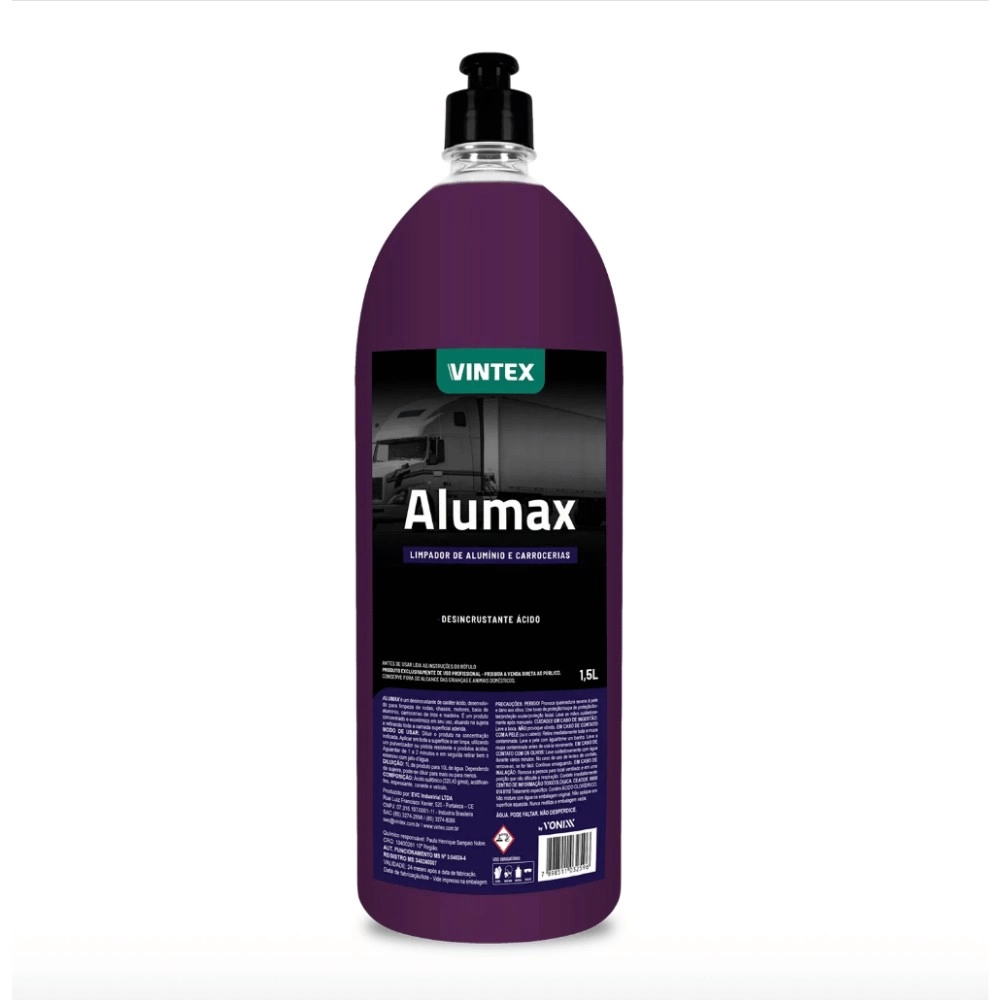O Alumax Vintex Vonixx é um limpador ácido de alta performance desenvolvido especialmente para limpeza pesada de superfícies de alumínio.